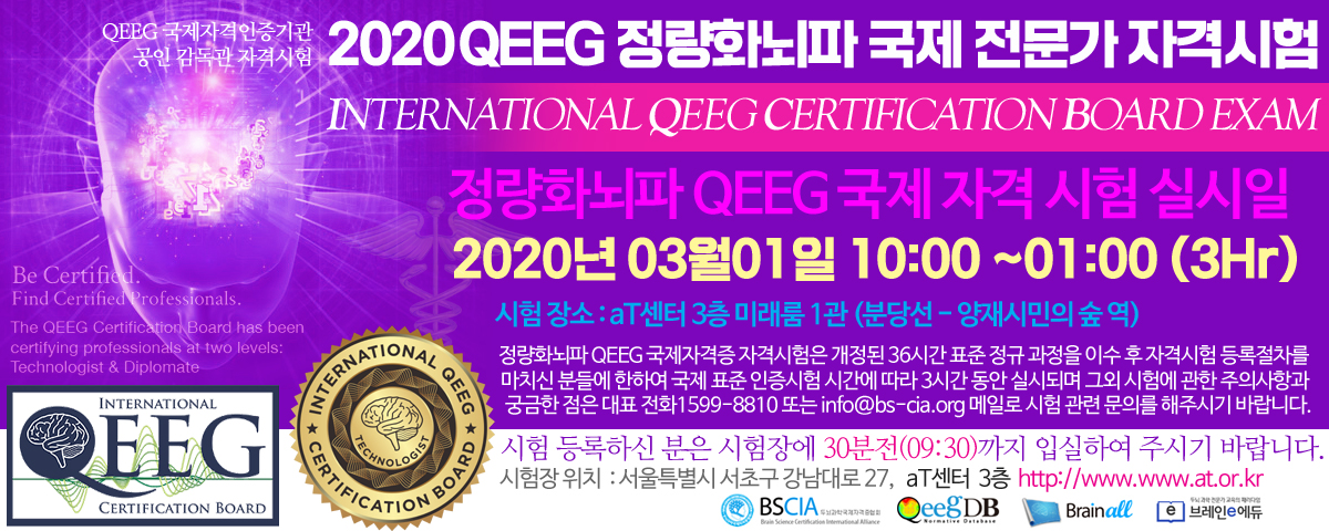 ¡Ü 2020³â 03¿ù 01ÀÏ IQCB Á¤·®È ³úÆÄ QEEG Àü¹®°¡ ±¹Á¦ ÀڰݽÃÇè ¾È³»